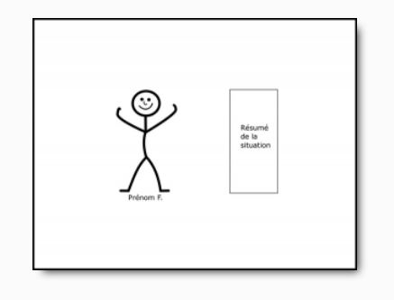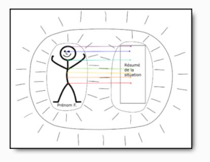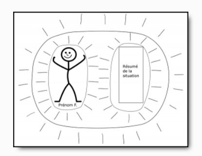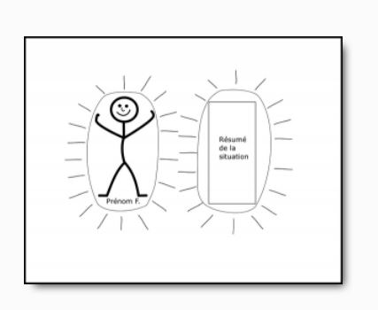 Dessinez à droite un rectangle pour une situation avec aussi votre prénom et votre nome avec une des mentions négatives suivantes : Ex. dépendante à la nourriture ou à un aliment spécifique ou en surpoids ou reprend du poids facilement etc.